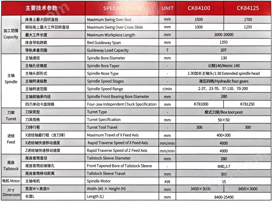 CK8480數控軋輥車床技術參數: